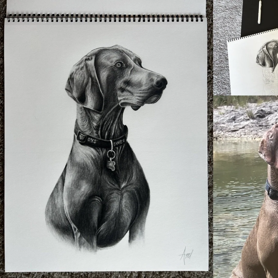 Send in your favorite photo(s) of your pet(s) for an original, hand-drawn, classic, black and white charcoal portrait.
